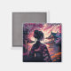 Design informatique d'une geisha dans un sort de cerisier. Image d'une femme avec une jolie coiffure de haut et des fleurs dans les cheveux portant un kimono. Le design japonais dans le style AI - Midjourney. En arrière-plan, les bâtiments japonais.