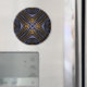 Magnet avec "L'essence de l'âme", une fractale de l'Apophyse par Susan Wallace. Copyright © 2009, Susan Wallace. Une étincelle dorée est le point central de cette conception abstraite curviligne en bleu, violet et marron.