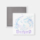 Aimant carré avec un dragon bleu et violet et le titre Unleashed (un roman de Dragons provocateurs d'Aria Glazki)