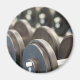 Photo de clôture d'une rangée de petites cloches alignées dans un gymnase