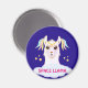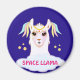 Magnet lama de l'espace mignon. Le lama de l'espace est décoré de rubans et de bijoux sur fond bleu indigo. Le texte peut être personnalisé.