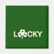 Aimant carré avec "Lucky" imprimé en lettres blanches sur vert foncé avec un trèfle blanc pour la lettre u. Voir toute la collection d'aimants de la Saint Patrick dans les TOUCHES SPÉCIALES | Section Favoris.