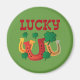Cette amusante illustration originale en fer à cheval porte le mot "Lucky" avec des fers à cheval rouges, jaunes et oranges et quatre trèfles de feuilles pour vous apporter beaucoup de chance et de bonne fortune!