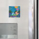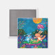 Artiste : Elisa Chavarri | Racon et lapin et grenouille et hibou dansent dans l'étang la nuit avec une grande lune d'automne au-dessus d'eux dans le ciel