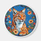 Lynx à la fourrure orange vif qui présente des taches distinctes. Le lynx a des yeux ambrés brillants et des touffes proéminentes de fourrure sur ses oreilles. Elle est entourée d'un florilège de fleurs colorées, dans des tons bleus, jaunes et rouges, encadrées par un arrière - plan bleu audacieux. L'ensemble mêle éléments naturels et ambiance artistique, mettant en valeur à la fois la beauté du lynx et l'agencement floral. Cela crée une scène visuellement étonnante et harmonieuse.