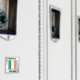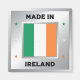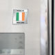 A square design featuring the Irish tricolour flag. There are decorative stars on either side of the flag, and are coloured in the shades of the tricolour flag. The design elements are situated on a faux silver background.