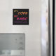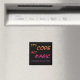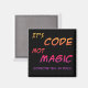 C'est Code Not Magic (Quelqu'un dit à mon patron) - un petit humour cynique enveloppé dans un aimant pour votre tableau blanc préféré. Texte orange, rouge et violet sur un arrière - plan noir.
