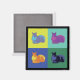 Photo d'un écureuil photomanipulé dans un style pop art en bleu, vert, jaune, orange, turquoise et violet contre un arrière - plan noir sur un aimant