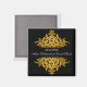 Joli baroque conçu pour enregistrer l'aimant Date. Le joli design baroque jaune doré se distingue sur cet arrière - plan noir et est divisé au milieu, comme une zone de texte pour les noms de date et de mariée et de mariée. Un grand rappel pour toute votre famille et vos amis. Customisez avec votre date et vos noms mariages.