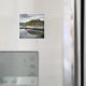 Aimant photo souvenir avec les maisons de port de pêche colorées de Portree ville, avec réflexion dans l'eau calme de la mer sur l'île de Skye en Ecosse, Royaume-Uni.