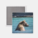 This striking image captures a majestic Alaskan Brown Bear (Grizzly) partially submerged in the frigid, turquoise waters of an Alaskan river. The bear is seen in profile, its thick, shaggy fur—drenched from the glacial runoff—clumping into dark, wet peaks along its powerful neck and shoulders. A patch of lighter, sun-bleached golden fur stands out near its nape, highlighting the rugged texture of its coat.