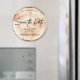 Personnalisez ce mariage unique Enregistrer la Date cercle magnets. Il dispose d'un disque imprimé de bois coupé, parfait pour votre mariage rustique. Traitement de lettres, script moderne pour les mots "enregistrer la date". Customisez les noms, la date et l'emplacement.