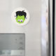 Un aimant avec un adorable visage monstre frankenstein. Il a de grands yeux et un petit sourire avec une cicatrice sur le front. Des boulons classiques qui sortent des côtés de sa tête. Ce type est vraiment mignon et pas effrayant du tout.