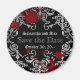 Mariage de style gothique personnalisé Enregistrer l'aimant Date pour votre mariage à thème Halloween ou vampire. L'aimant est noir avec un motif damassé gris clair à gris foncé et des éclaboussures de sang que vous pouvez retirer si vous le souhaitez. Un petit accent décoratif amusant est mis sur le frigo.