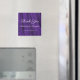 Un aimant mariage violet vous remercie, avec un motif luxuriant de riche soie violette ondulant. Tous les détails (y compris le nom de la mariée et du marié, la date du mariage, etc.) peuvent être personnalisés selon vos besoins. Veuillez noter que cet aimant mauve personnalisé fait partie d'une collection de mariages plus grande, y compris l'invitation correspondant, enregistrer les faveurs de date, l'album de mariage, RSVP et plus que vous pouvez découvrir ici : https://www.zazzle.com/collections/purple_silk_and_gold_wedding_rings-119740320521525107