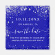 Un aimant à savourer la date moderne et élégant pour un mariage. Un arrière - plan bleu royal décoré avec de la poussière de parties scintillant en faux argent. Personnalisez et ajoutez une date et des noms. Le texte : Save the Date est écrit avec un grand script de style à la main tendance.