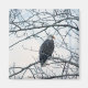 Une photo d'un aigle à tête blanche assis sur une branche d'arbre, regardant d'un côté, avec un morceau de poisson suspendu de son bec. L'oiseau semble avoir un sourcil, indiquant qu'il a le dégoût de celui qui l'a dérangé. L'arbre dans lequel l'aigle est perché n'a pas de feuilles comme la scène photographiée était en hiver. Copyright ©2021 Kimberly J Tilley.