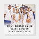 Meilleur Entraîneur Ever Nom De L'Équipe Année Tenue De Photo. Personnalisez facilement le texte et choisissez votre photo d'équipe préférée pour remplacer l'exemple d'image. Des modifications aux couleurs du texte peuvent être apportées pour mieux convenir à votre photo et aux couleurs de l'équipe si nécessaire via l'option personnaliser supplémentaire.