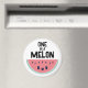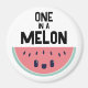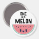 Aimant kawaii mignon avec une adorable tranche de pastèque aux yeux clairs et un doux sourire. Au-dessus de la tranche de melon se trouvent les mots One In A Melon en lettres noires.