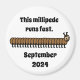 Imaginez un aimant blanc et rond avec un millipede brun détaillé au centre. Le corps allongé et segmenté du millipède traverse l'aimant en une courbe douce, son exosquelette brun brillant reflétant des variations subtiles de couleur de la châtaigne foncée à l'ambre plus clair. Chaque segment a deux paires de pattes minuscules, créant un motif rythmique de membres délicats s'étendant de ses côtés. Ces jambes, légèrement plus légères en couleur, donnent au millipède un sentiment de mouvement, comme si c’était en train de ramper gracieusement à travers la surface. La tête du millipède est petite et arrondie, avec une paire d'antennes courtes et fines qui se trouvent devant. Son corps s'étire vers la fin, où les segments deviennent plus petits, créant une finition lisse et graduelle. La texture du corps du millipède, avec son motif segmenté et sa surface lisse, presque brillante, se distingue de l'arrière - plan blanc croustillant de l'aimant, rendant la créature à la fois intrigante et visuellement distincte. Les tons marron terreux et naturels contrastent agréablement avec le blanc minimaliste, ce qui donne au design un charme sobre mais captivant.