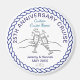 Small round cruise cabin door magnet with a modern glass illustration to celebrate your wedding anniversary. Design featuring your names, the ship name, a date, or any text you need. It is ideal to hang in your stateroom and can be repurposed as a fridge magnet keepsake after the trip.