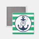 Bandes marines vertes avec ancre bleu marine et monogramme.