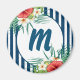 Aimant Monogramme moderne à rayures et fleurs bleues