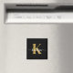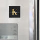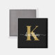 Ce simple et élégant aimant carré noir de 2" avec votre prénom dans une police de script tendance en blanc et votre première initiale dans une police casquette moderne en or est parfait pour vous. C'est design, tendance et pourtant très classique. Il aura l'air fabuleux sur votre meuble, réfrigérateur, bureau.