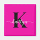 Ce simple et élégant aimant carré rose chaud de 2" avec votre prénom dans une police de script tendance en blanc et votre première initiale dans une police casquette moderne en noir est parfait pour vous. C'est design, tendance et pourtant très classique. Il aura l'air fabuleux sur votre meuble, réfrigérateur, bureau.