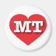 Cet aimant présente un coeur rouge vif contenant les lettres coques en haut, en blanc et gras MT, l'abréviation officielle du Montana, l'état trésor.