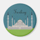 L'aimant présente une image vectorielle de la mosquée Sultan Ahmed à Istanbul, en Turquie. Le texte peut être customisé à la demande.