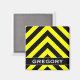 Ce modèle magnétique est composé d'un motif en chevron noir et jaune. Il porte également un nom personnalisé.