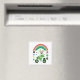 Un chien mignon sur une moto entouré d'un arc-en-ciel coloré et d'étoiles, design pour les enfants