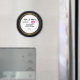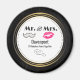 Un aimant mariage d'anniversaire avec un design moderne - des lèvres de baiser rose glamour et une illustration masculine de moustache d'aspect rétro. Placez-vous sur un arrière - plan en damier noir avec un cadre circulaire en dégradé doré au centre. Texte dit M. et Mme et vous pouvez personnaliser avec votre nom et le nombre d'années fabuleuses ensemble