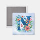 Aimant N monogramme bleu avec fleurs