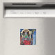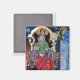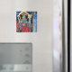 Coloré, vibrant, peinture contemporaine en or, bleu, rouge, vert, couleurs marron. Un mystérieux sorcier hypnotique avec d'élégants costumes de velours rouge tenant une sphère magique assise sur un trône gothique avec des gargouilles et une chouette. Ambient est surréaliste, fantastique, alchimique où vous voyez un bouchon boire d'une tasse, un moine tempéré volant sur une grenouille, bulles transparentes, paysages d'imaginaire avec feu d'enfer, ciel bleu cosmique avec étoiles, montagnes du ciel, arbres.Egg Tempera sur panneau en bois avec feuille d'or. 1989, Miniature Fabriquée avec des techniques picturales de 1300 par Alessandro Lumini (c) C'est aussi un beau design d'imaginaire pour Noël, Fête, Anniversaire, Jour de la Saint-Sylvestre, Mardi Gras et salutations carnavales.