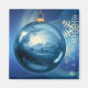 Graphisme avec une balle bleue de noël, décoré avec un paysage hivernal