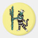 Aimant cactus de Noël avec un dessin à l'encre numériquement d'un joli personnage kitty avec une fleur sur la tête presque étouffé par un cactus avec les mêmes fleurs et une guirlande de boules de Noël accroché dessus.