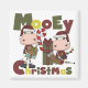 Deux vaches dans des casquettes de bas, des cadeaux de Noël, des lumières de vacances, des sucres de canne, et texte rouges qui lit "Noël de Mooey" sur le T-shirts de vacances, les tasses, les cartes, les autocollants, les sacs fourre-tout, les horloges murales, les boîtes de souvenir, les ornements, les keychains, et d'autres habillement et cadeaux mignons de vacances de thème de vache.