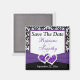 Ce mariage damassé noir et blanc enregistrer l'aimant de date a un ruban imprimé violet avec une paire de bijoux en diamant IMPRIMÉ et la parties scintillant FAUX joint le coeur sur lui qui correspond au faire-part de mariage ci-dessous. Le texte est personnalisable pour que vous puissiez le changer pour dire "Merci" et l'utiliser comme une faveur de mariage à la place. Si vous avez besoin d'autres articles correspondants dans cette conception, veuillez envoyer votre demande par courriel à niteowlstudio@gmail.com.