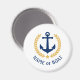 Un aimant rond personnalisé avec votre nom de bateau, votre nom de famille ou tout autre texte souhaité, au besoin. Doté d'une ancre nautique conçue sur mesure, de feuilles de laurier de style or et d'emblème d'étoile sur le blanc ou de régler facilement la couleur primaire pour correspondre à votre thème actuel.