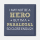 Je ne suis peut-être pas un héros, mais je suis un parajuriste si proche de l'art du mot humoristique dans les caractères sans-serif et doodle cross-hatch en blanc et jaune doré.