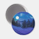 Nuit d'hiver magique avec pleine lune et gelée couverte de sapins neigeux et d'épinettes en hiver. Nuit étoilée. Forêt neigeuse la nuit au clair de lune.