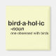 Ce dessin drôle d'oiseau est mis en forme comme une définition qui se trouve dans le dictionnaire. Ici, le mot est birdaholic et la définition est "une obsédée par les oiseaux". Vous connaissez peut-être des oiseaux comme ça, ou peut-être vous êtes vous-même un birdaholic ! Vous pouvez totalement customiser ce cadeau ! Ajoutez du texte, changez de couleur, déplacez le design, choisissez un style différent - faites-le vous-même !