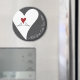 La conception du produit présente deux colombes blanches perchées ensemble et regardant vers un cœur. Les colombes blanches sont des symboles d'amour, de chance, de paix et de prospérité. Cette illustration simple d'oiseaux crée des aimants modernes et uniques avec un texte personnalisé pour son anniversaire, la Saint-Valentin, un mariage ou des faveurs de fête d'anniversaire de mariage.