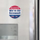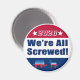 Pas satisfait de l'un ou l'autre des candidats à l'élection 2020 ? Alors ce design est pour vous. Cette conception circulaire comporte des sections rouge, blanche et bleue. La section rouge supérieure a l'année 2020 entre deux étoiles tout en blanc souligné en bleu. La section blanche du centre a un texte qui dit : "Nous sommes tous vissés !" en bleu, et la section bleue du bas a un âne de style démocrate et un éléphant de style républicain, en blanc.
