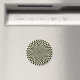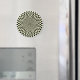 Un design de style Op Art circulaire à deux tons qui est composé de cercles de rayons, chacun décalé pour créer un motif alternatif.