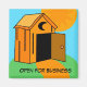 Illustration d'une maison orange avec porte ouverte et croissant de lune