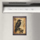 Une page de journal vintage tirée du livre de sorts manuscrit d'un sorcier, avec l'illustration d'un corbeau, d'un crâne humain à l'aspect étrange, et quelques symboles d'arcane sur un arrière - plan de cuir foncé. Cet aimant a des caractéristiques à la fois Goth et grunge, et est parfait pour toute personne qui aime l'imaginaire et la magie.