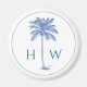 Cet aimant monogrammé d'inspiration côtière présente un palmier classique en bleu sur un arrière - plan blanc avec un monogramme que vous pouvez personnaliser avec votre choix d'initiales. Idéal pour les faveurs monogrammes et les sacs cadeaux monogrammés.